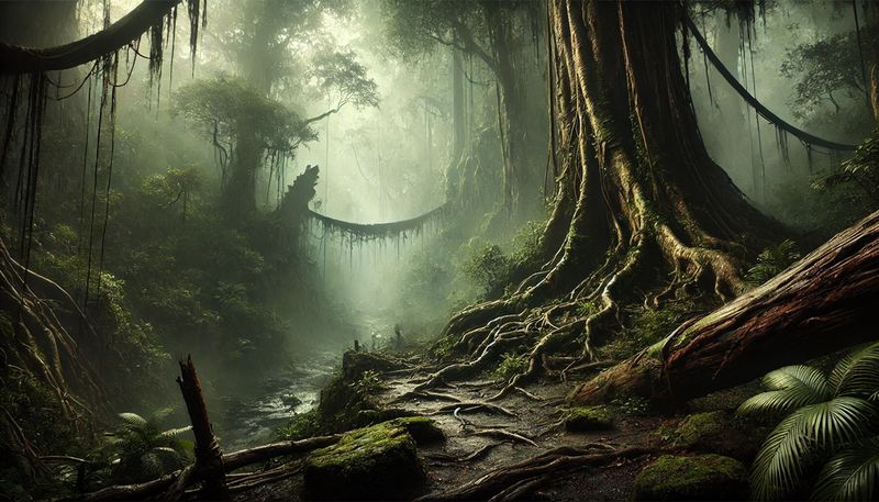 Their journey led them to the lush lands further east along the river, where the canyons gave way to jungle and the air was thick with the scent of life. In that fertile riverbed, the seeds of hope were sown, and as their humble camp grew into a home, their struggles shaped their bond and became the cornerstone of their love for one another.